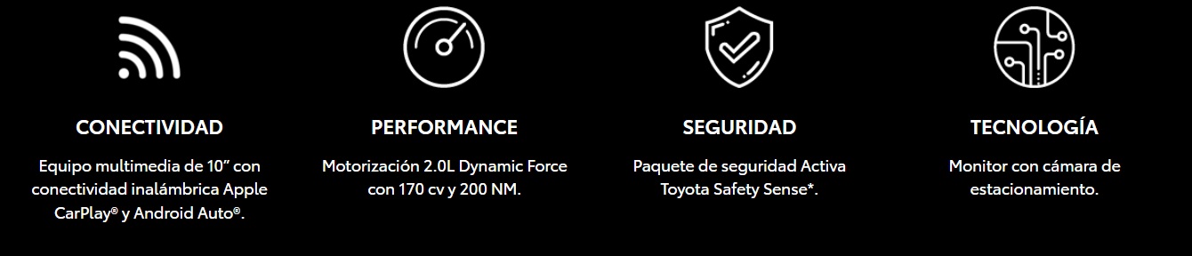 Accedé a toda la información de tu vehículo desde la app de Toyota. Monitoreá el estado del vehículo, controlá su seguridad con rastreo, seteo de delimitación geográfica y velocidad máxima. Toda la información que necesitás de forma integrada para mejorar tu experiencia de manejo.